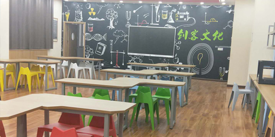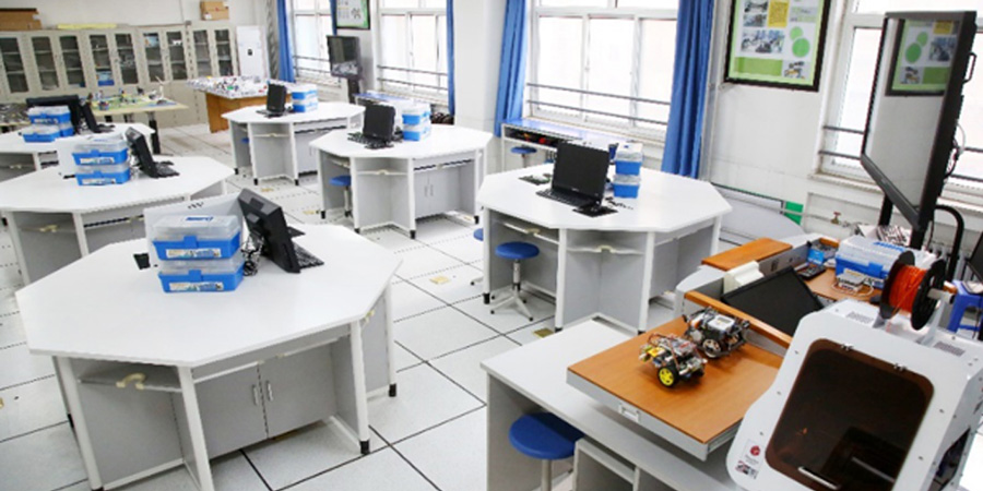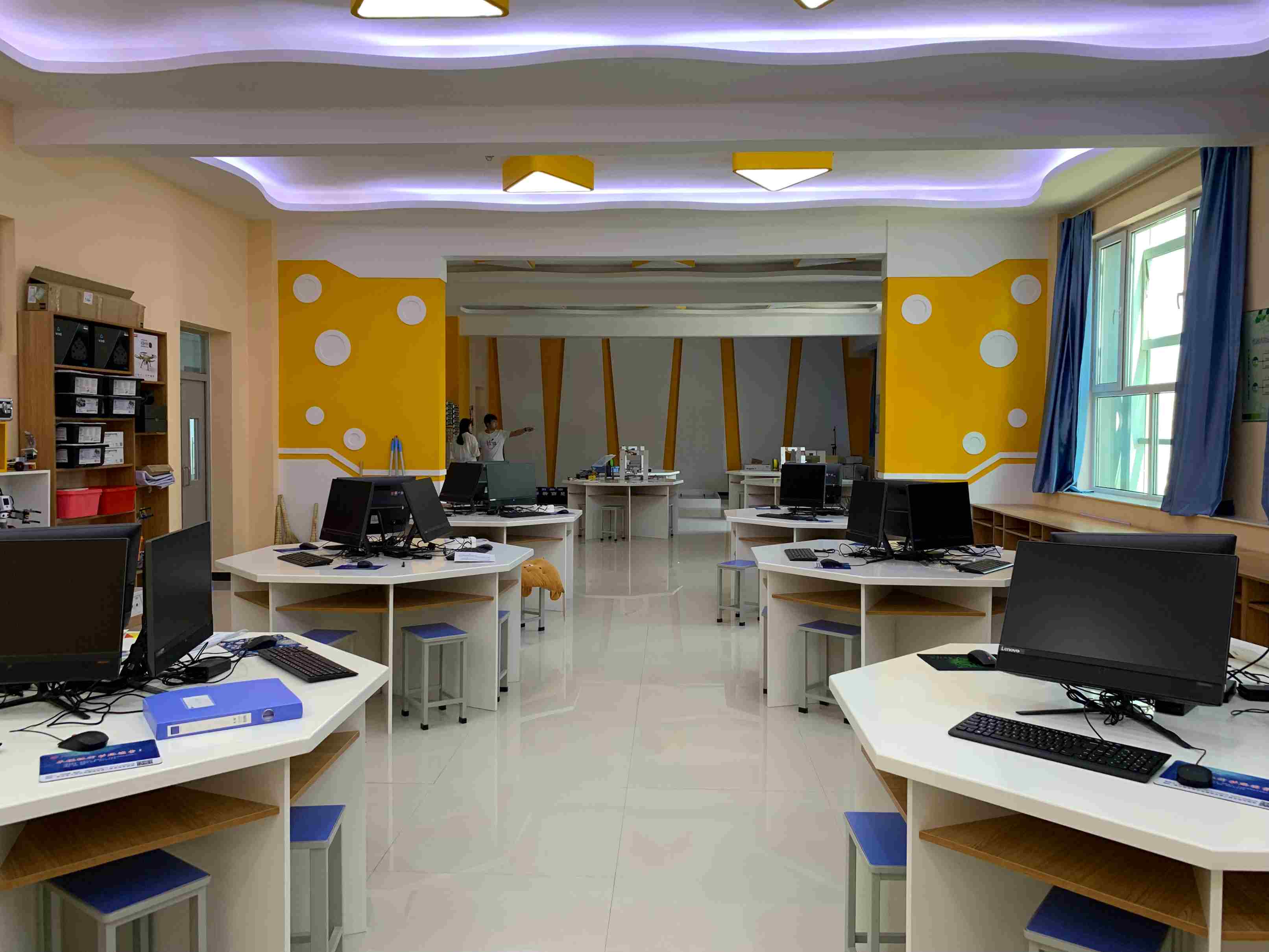 阿斑兔將機器人、創客、3D打印、航模等融為一體,研發(fā)、設計具有情景體驗、創意生成、原型制作、展示交流等多功能為一體的機器人教育教學場所,即創新教育實驗室,針對不同年齡段學生的特點、學校學情等,為其提供足夠的空間、設備和完善的課程體系。